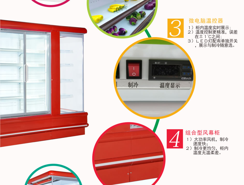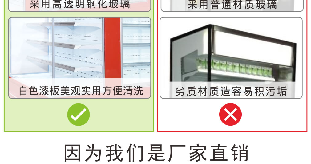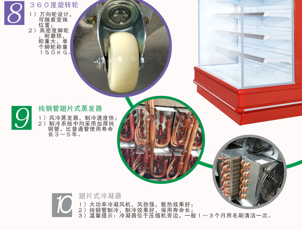 ① 風(fēng)扇或空調(diào)出風(fēng)口不能正對(duì)敞口式冷柜吹風(fēng);
