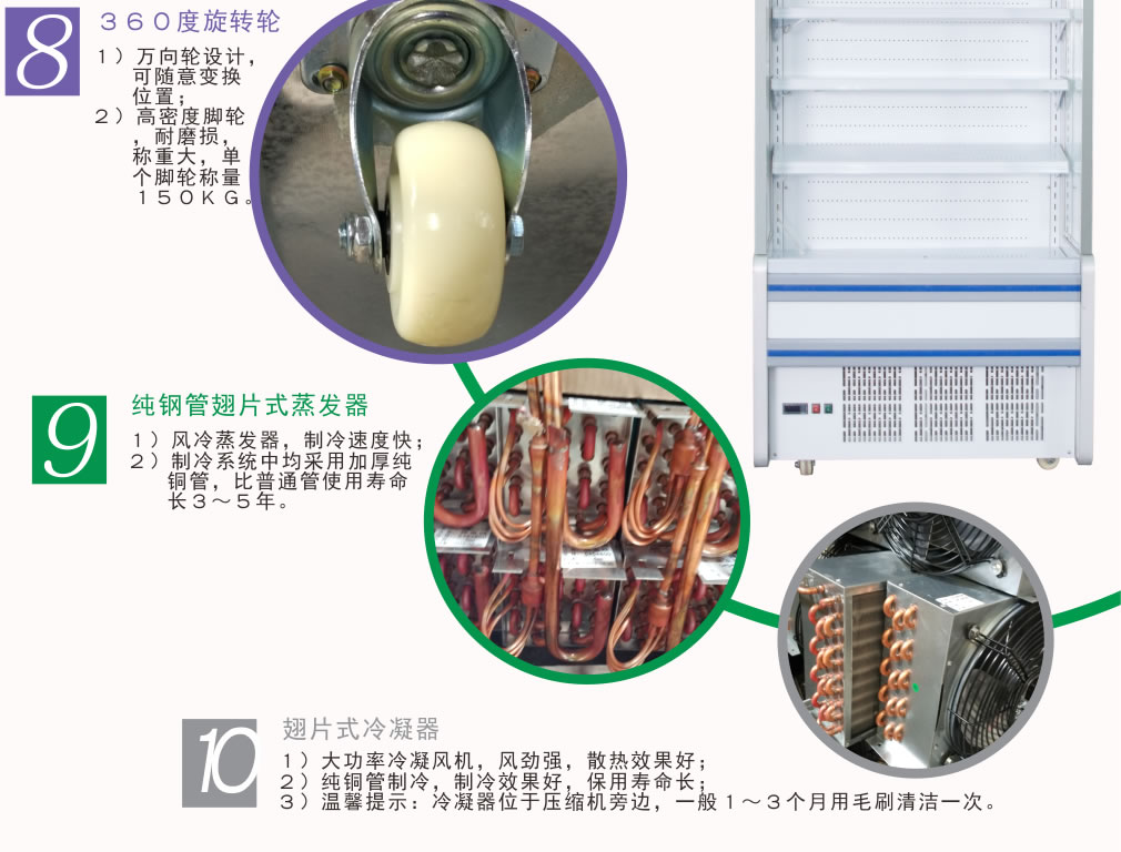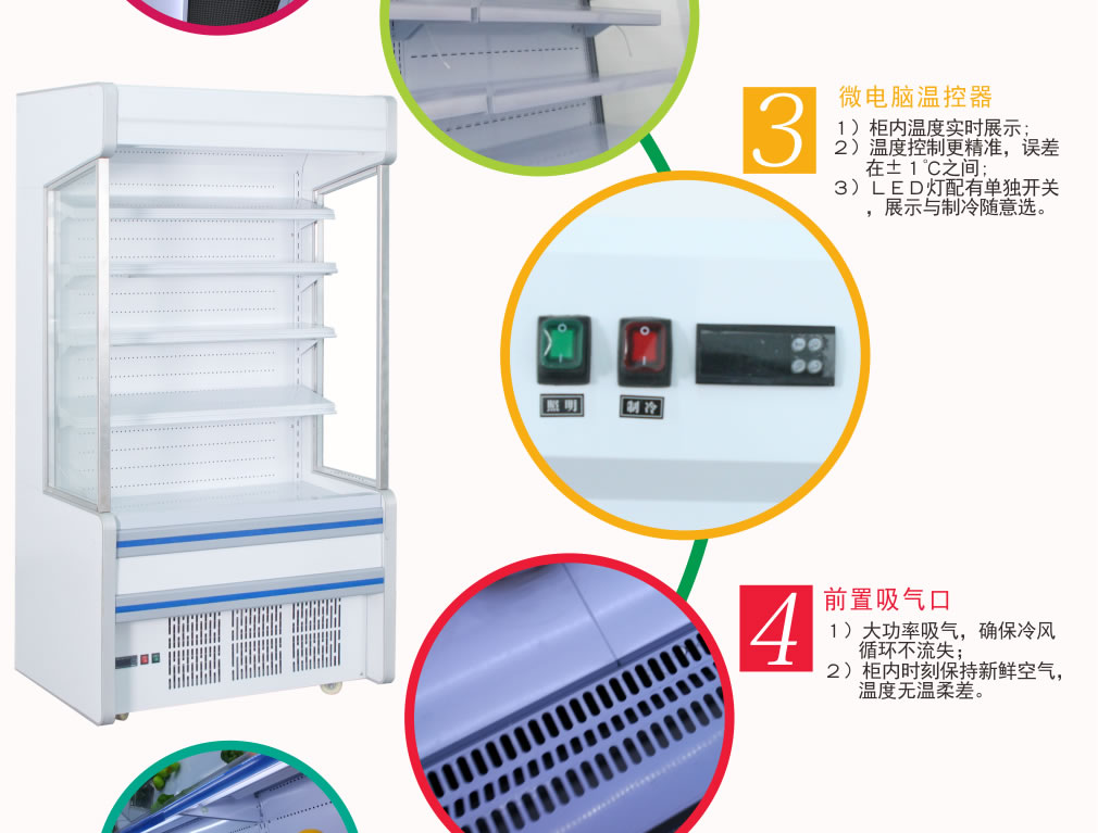 ① 風(fēng)扇或空調(diào)出風(fēng)口不能正對敞口式冷柜吹風(fēng);