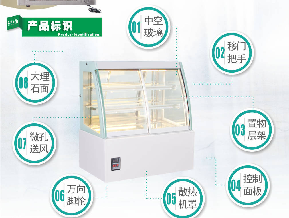 | CQ-120 | 1.2米單弧前開門蛋糕冷柜 | 1200*740*1250 | 2~10℃ | 220V/550W | R134a |