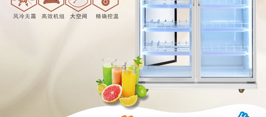 ③ 冷柜內外溫差較大時,遇空氣溫度較大的天氣時玻璃門上有水霧凝結,將溫度調整后即可。