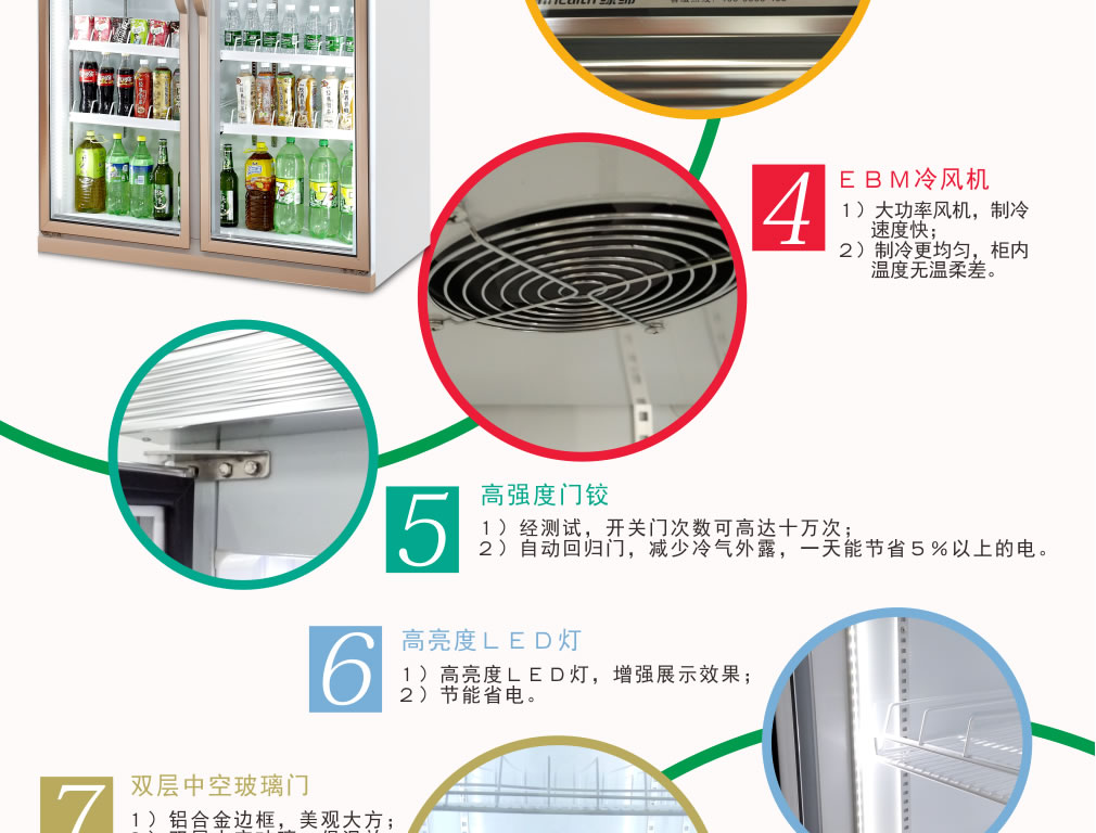 | LG-2400 | 四門豪華冷藏展示柜(香檳色) | 2400*680*2120 | 0-10℃ | 2120 | 700 |