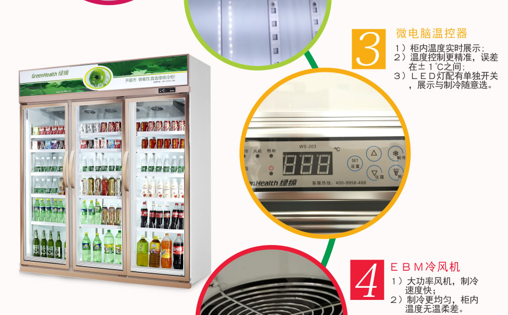 ④ 初次使用時(shí),先空柜運(yùn)行1小時(shí)左右,待柜內(nèi)溫度降下來后再逐步放入商品,盡量少量多次添加,柜內(nèi)不能添加過滿。