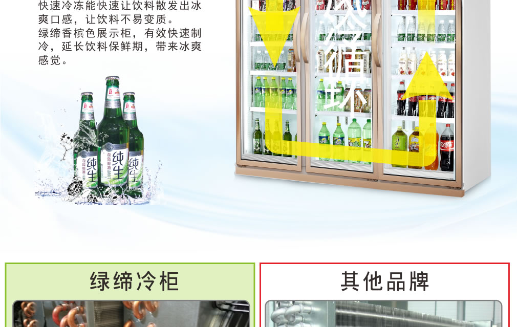 首頁>產(chǎn)品中心>立式展示柜>多門飲料展示柜> 香檳色五門豪華柜分體機